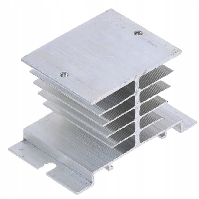 Radiator do przekaźników SSR z otworami do montażu przekaźnika.
