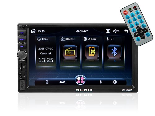 Radio samochodowe AVH-9810 marki Blow z multimedialnym systemem oraz 7 calowym, kolorowym i dotykowym wyświetlaczem umożliwia odtwarzanie radia FM/AM, muzyki, filmów, a także obrazów. Możliwość montażu kamery cofania Jedno z wejść, które znajdują się z tyłu radia pozwala na montaż dodatkowej tylnej kamery (zestaw nie zawiera kamery). Po podłączeniu do radia Blow istnieje możliwość odtworzenia obrazu z kamery na ekranie odtwarzacza. Zdecydowanie poprawia to bezpieczeństwo oraz komfort zwłaszcza podczas parkowania w trudnych warunkach, dzięki czemu cofanie lub parkowanie już nigdy nie będzie problemem. Mirror Link Funkcja która pozwala na przeniesienie ekranu z telefonu na wyświetlacz radia. Łączność między radiem a smartfonem odbywa się za pomocą kabla USB. Dzięki mirror link można przenieść np. uruchomioną nawigacje, ulubiony teledysk, filmy czy zdjęcia na radio samochodowe. Przed rozpoczęciem korzystaniu z trybu mirror link należy uruchomić opcję programisty oraz debugowanie USB, podłączyć smartfon do radia, pojawi się informacja o konieczności zainstalowania dedykowanej aplikacji, proces instalacji odbywa się automatycznie. Funkcjonalne sterowanie Dołączony do zestawu smukły pilot, z którego możemy wykonać wszystkie podstawowe komendy, zmieści się w prawie każdym schowku w samochodzie. Zasięg działania pilota jest wystarczający, aby podróżni zajmujący miejsce z tyłu samochodu bez problemu mogli sterować muzyką. Aby zapewnić bezpieczeństwo oraz komfort podczas prowadzenia pojazdu, radio umożliwia podłączenie i konfiguracje fabrycznych przycisków sterowania na kierownicy. Mocny moduł FM/AM Zastosowany nowoczesny, mocniejszy moduł FM/AM w który jest wyposażone radio pozwoli na odtwarzanie Twoich ulubionych stacji radiowych bez uciążliwych zakłóceń. Na radiu jest możliwość zapisania do 6 stacji, które potem można szybko i wygodnie wybrać. Dodatkowa funkcja RDS gwarantuje dobrą jakość odsłuchiwanych audycji radiowych oraz ułatwia strojenie. Dzięki temu również stacje radiowe mogą wysłać dodatkowe informacje takie jak np. nazwę radia, datę i godzinę, nazwę emitowanego programu, nazwy utworu itp. Specyfikacja Max. moc: 50W x 4 Zasilanie: 12V DC Maksymalny prąd: 15A (max) Impedancja: 4~8 Ohm Montaż: 2 DIN Wyświetlacz: 7 cali kolorowy, dotykowy Rozdzielczość: Full HD Bluetooth: TAK (zestaw głośnomówiący) Wejścia: USB, AUX, Micro SD Mirror Link: TAK RDS: TAK Wsparcie sterowania kierownicy: TAK Częstotliwość FM: 87,5 - 108 MHz Odtwarzacz MP3: TAK Wejście na kamerę cofania: TAK Mikrofon: TAK Menu: Polskie menu (do wyboru również inne języki m.in angielski) Wymiary: 178 mm x 100 mm x 62 mm Opakowanie zawiera: Radio 2DIN BLOW AVH-9810 Funkcjonalny pilot Okablowanie Instrukcja obsługi w języku polskim oraz angielskim