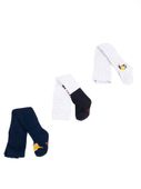Bawełniane, kryjące rajstopy dla chłopca. W stonowanych kolorach, z wesołymi motywami na pupci i nóżkach. Sprzedawane w praktycznym trzypaku. Uszyte z miękkiej i zarazem wytrzymałej bawełny, która gwarantuje duży komfort noszenia. Dzięki swojej elastyczności doskonale dopasowują się do nóżki dziecka i nie upijają. Świetnie sprawdzą się zarówno na specjalne okazje, jak i do codziennego użytkowania.