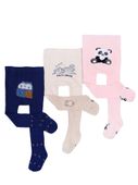 Bawełniane, kryjące rajstopy dla dziewczynki. W dziewczęcych kolorach, z wesołymi motywami na pupci i nóżkach. Uszyte z miękkiej i zarazem wytrzymałej bawełny, która gwarantuje duży komfort noszenia.