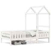 Rama łóżka daszkiem, biała, 80x200 cm, lite drewno sosnowe