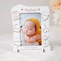 Nasza ramka o wymiarach 17 cm x 21 cm jest zaprojektowana, aby pomieścić zdjęcie o wymiarach 10x15 cm. To idealne miejsce, w którym możesz umieścić najpiękniejsze chwile związane z narodzinami Twojego dziecka.