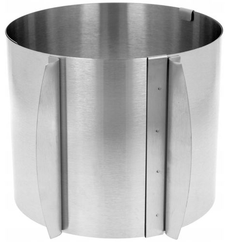 Ten regulowany rant do tortu o wysokości 15 cm, z możliwością dostosowania średnicy od 16 do 30 cm, wyróżnia się precyzyjną konstrukcją i wbudowaną miarką, która umożliwia łatwe i dokładne ustawienie wymiaru. Dzięki temu każdy tort zyskuje idealne, stabilne kształty, co gwarantuje profesjonalne rezultaty w domowej kuchni.