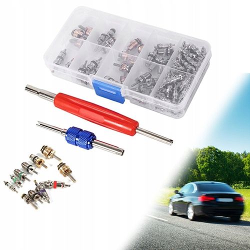 Ten zestaw zawiera bogaty asortyment 102 elementów, w tym 100 rdzeni zaworków w różnych rozmiarach i wariantach, a także 2 specjalistyczne narzędzia do ich demontażu i montażu. Tak bogaty skład zestawu pozwala na sprawne przeprowadzenie wszelkich prac konserwacyjnych i naprawczych układów klimatyzacji.