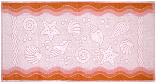 Wytłoczone rybki lub muszelki połączone zostały z motywem fal w kilku wesołych kolorach.