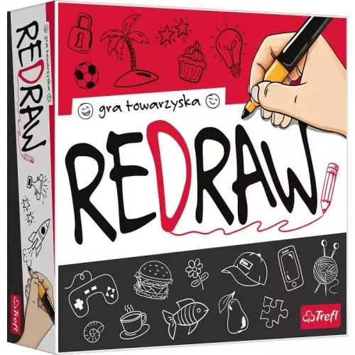 „Redraw” to unikalna gra towarzyska, w której nie musicie umieć rysować, aby zostać artystami. Waszym zadaniem będzie przerysowywanie oraz upiększanie tego, co znajduje się na karcie lub tego, co stworzyli wcześniej inni gracze. Pozostali będą starali się odgadnąć, które hasło jest aktualnie rysowane. Kto jako pierwszy zakryje ręką odpowiednią kartę i powie prawidłowe hasło, zdobywa punkt. Ten z graczy, który jako pierwszy zbierze 5 kart, zostaje zwycięzcą! Zawartość opakowania: • 25 kart do rysowania, • 56 kart haseł, • mazak, i• nstrukcja.