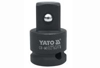 Komplementarny produkt, umożliwiający przejście z wymiaru 1/2" na wejściu na wymiar 3/4" na zejściu. Redukcja współpracuje z nasadkami udarowymi oraz urządzeniami pneumatycznymi. Została w tym celu wykonana w tych samych technologiach i z tych samych materiałów co nasadki. Stal CrMo SCM-440 to unikalna stal stopowa, która posiada 2 krotnie wiekszą wytrzymałość na rozciąganie od zwykłej stali węglowej oraz 3 krotnie wyższą granice plastyczności. Te cechy powodują, że nasadki YATO przez wydłużony czas zachowują swój nominalny wymiar oraz nie pękają pd wpływem pracy udarowej.