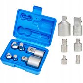 Kompletny zestaw obejmuje 6 adapterów redukcyjnych o różnych rozmiarach (1/4", 3/8", 1/2", 3/4"), umożliwiając swobodną pracę z różnorodnymi narzędziami i akcesoriami.