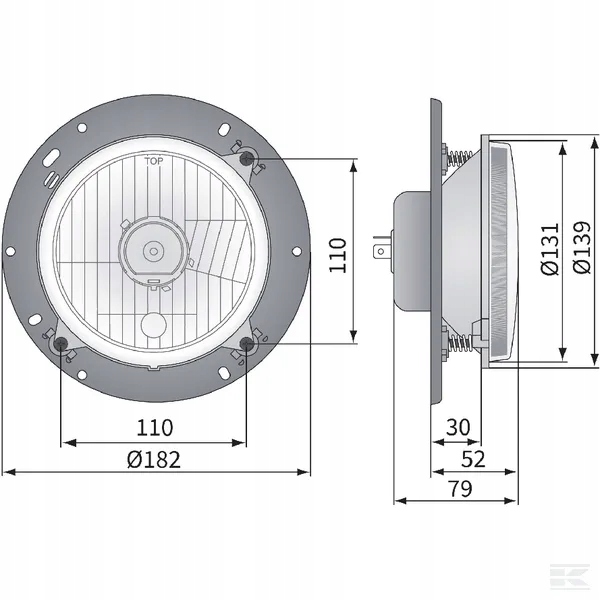 Posiada jednocześnie homologację dla żarówek H4 oraz R2. Zastosowanie dedykowane dla ciągników Deutz-Fahr serie 07, Agrocompact, Agroprima, Agrostar, Agroxtra, DX, DX3 SC, DX3 V/F/S, DX3 VC, DX4, DX6, DX7, Dxab, Dxbis Hopfen