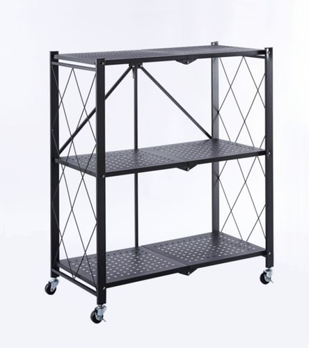 Nie potrzeba żadnych narzędzi. Wkręcamy kółka, rozsuwamy półki, blokujemy i gotowe.