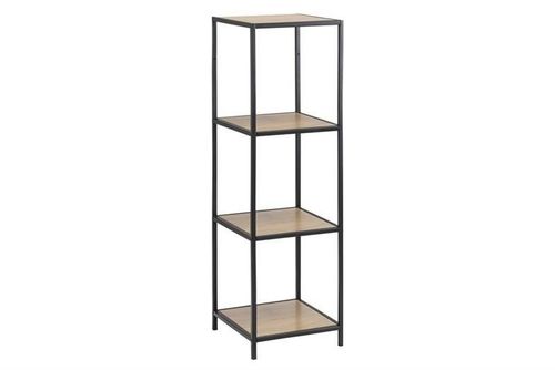 Regał Seaford VI wykonany został z metalu malowanego proszkowo oraz płyty MDF wykończonej laminatem w kolorze dębu. Doskonale sprawdzi się w przestrzeni domowej ale również w przestrzeniach publicznych czy restauracji. Jego prostota i geometryczność sprawia, że nie będziesz miał problemu ze znalezieniem dla niego miejsca w swoich przestrzeniach. Połączenie faktury drewna z metalem to trend który jeszcze na długo będzie gościł podczas urządzania wnętrz.