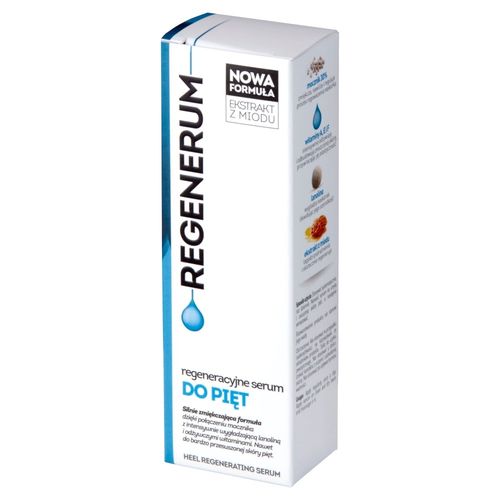 Regenerum regeneracyjne serum do pięt zapewnia piętom miękkość, gładkość, a także zabezpiecza je przed pękaniem.