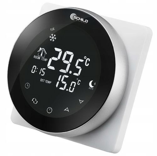 REGULATOR CZUJNIK TEMPERATURY POKOJOWEJ TERMOSTAT Schild EP-78 to innowacyjne rozwiązanie, które połączy w jednym urządzeniu nowoczesny design oraz zaawansowaną funkcjonalność. Dzięki dotykowemu ekranowi o dużej powierzchni, obsługa termostatu stanie się niezwykle intuicyjna, a jego elegancki wygląd wpasuje się w każde nowoczesne wnętrze.