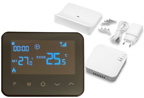 Łatwość obsługi to jego kolejna siła – duży, podświetlany wyświetlacz pokazuje aktualną i ustawioną temperaturę oraz czas, a sterowanie 5 przyciskami jest intuicyjne. Zasilany przez USB, kompaktowy nadajnik (126x98x23,5 mm) można zamocować na ścianie lub postawić na nóżkach, co czyni go praktycznym rozwiązaniem do każdego wnętrza. To więcej niż termostat – to inteligentny towarzysz codziennego komfortu, dostosowany do Twoich potrzeb.