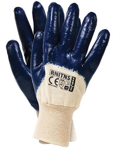 Rękawice ochronne powlekane nitrylem, zakończone dzianinowym ściągaczem.