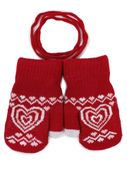 Praktyczne, dziewczęce rękawiczki w kolorze czerwonym z motywem norweskim w kształcie serduszka. Grube, w środku posiadają ocieplenie, gwarantujące duży komfort cieplny. Świetnie prezentują się na dłoniach.