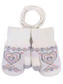 Praktyczne, dziewczęce rękawiczki w kolorze ecru z motywem norweskim w kształcie serduszka. Grube, w środku posiadają ocieplenie, gwarantujące duży komfort cieplny. Świetnie prezentują się na dłoniach.