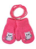 Praktyczne, dziewczęce rękawiczki w kolorze fuksji z motywem sówki. Dwuwarstwowe. Świetnie prezentują się na dłoniach.