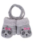 Praktyczne, dziewczęce rękawiczki w kolorze szarym z uroczą mordką. Zakończone futrzanym mankietem. Dwuwarstwowe, w środku wykończone miłym futerkiem. Świetnie prezentują się na dłoniach.