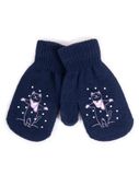Praktyczne, dziewczęce rękawiczki w kolorze granatowym z motywem kotka. Świetnie prezentują się na dłoniach.