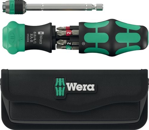 Rękojeść Kraftform z magazynkiem zintegrowanym w rękojeści na 6 bitów z trzpieniem teleskopowym do bitów 1/4". Drobnozębna grzechotka zintegrowana z rękojeścią zapewnia szybką pracę. Intuicyjna zmiana kierunku pracy: obrót pierścienia przełączającego w prawo powoduje zmianę kierunku pracy w prawo, obrót pierścienia przełączającego w lewo powoduje zmianę kierunku pracy w lewo. Mechanizm zapadkowy można zablokować w pozycji 0 dla zapewnienia precyzyjnej pracy. Chowany w rękojeści teleskopowy trzpień z uchwytem szybkowymiennym Rapidaptor umożliwia szybkie dokręcanie nawet w ograniczonych przestrzeniach, gdy trzpień jest schowany. Trzpień można wysunąć przy pomocy tulei blokującej. Narzędzie może być teraz stosowane w funkcji wkrętaka. Trzpień teleskopowy można wyjąć i zastosować jako adapter do elektronarzędzi, jak również ustawić go z powrotem w pierwotnej pozycji. Technologia Rapidaptor uchwytu do bitów zapewnia szybką wymianę narzędzia. Zestaw zawiera 6 bitów 6 BiTorsion charakteryzujących się długą żywotno