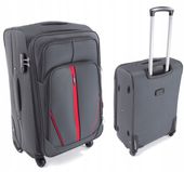 Miękkie rączki (boczna i górna) eliminują dyskomfort nawet przy najcięższym bagażu. Wewnętrzna organizacja z pasem zabezpieczającym, dużą kieszenią na zamek i stylową podszewką z logotypem zapewnia porządek i elegancję w każdej sytuacji.