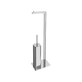 Stojak na papier toaletowy ze szczotką składa się z metalowego pojemnika, szczotki w kolorze chrom z uchwytem oraz uchwytu na papier toaletowy.