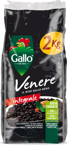 VENERE – RYŻ ANTYCZNYCH IMPERATORÓW CHIŃSKICH O CZARNYCH, RAZOWYCH ZIARNACH PARBOILED. Jest idealny z dodatkiem oliwy lub masła jako dodatek do mięsa lub ryby. Spróbujcie go także po ugotowaniu w osolonej wodzie i podsmażeniu na patelni z oliwą czosnkiem z krewetkami i posypaną na wierzchu natką pietruszki. Jedyny taki ryż na rynku, poddany wstępnej obróbce termicznej, dzięki czemu jego czas gotowania wynosi zaledwie 18 minut. Teraz w formacie przeznaczonym dla gastronomii - torba 2kg.