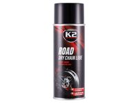 K2 Suchy smar do łańcuchów ROAD - to wysoce wydajny smar, przeznaczony do smarowania łańcuchów oraz zębatek napędowych w motocyklach drogowych. Dzięki właściwościom smarująco-penetrującym, wnika we wszystkie szczeliny, chroniąc łańcuch oraz zębatki przed przedwczesnym zużyciem. Można go stosować we wszystkich typach łańcuchów, x-ring, o-ring, z-ring itp.
