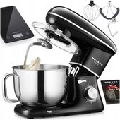 ✅ Cechy dodatkowe: Atrakcyjny, ponadczasowy design, Metalowe mieszadła wyposażone w system szybkiego montażu, Metalowy napęd, Misa 6.2L wykonana ze stali nierdzewnej, wyposażona w uchwyt, Osłona zapobiegająca chlapaniu z wlotem do dodawania składników, Pokrętło do sterowania z podświetleniem LED, Przekładnia planetarna, Solidny metalowy zawias umożliwiający podniesienie głowicy, System blokowania misy w podstawie, Wysokiej jakości opakowanie nadające się na prezent