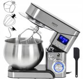 ✅ Cechy dodatkowe: 3 mieszadła, Duża misa 5,0L ze stali nierdzewnej, Plastikowa szpatułka, Podświetlane pokrętło, Pokrywa antybryzgowa, Ruch planetarny mieszania, Stabilne przyssawki, Uchylna głowica, Wyświetlacz LCD, Zabezpieczenie przed przeciążeniem silnika