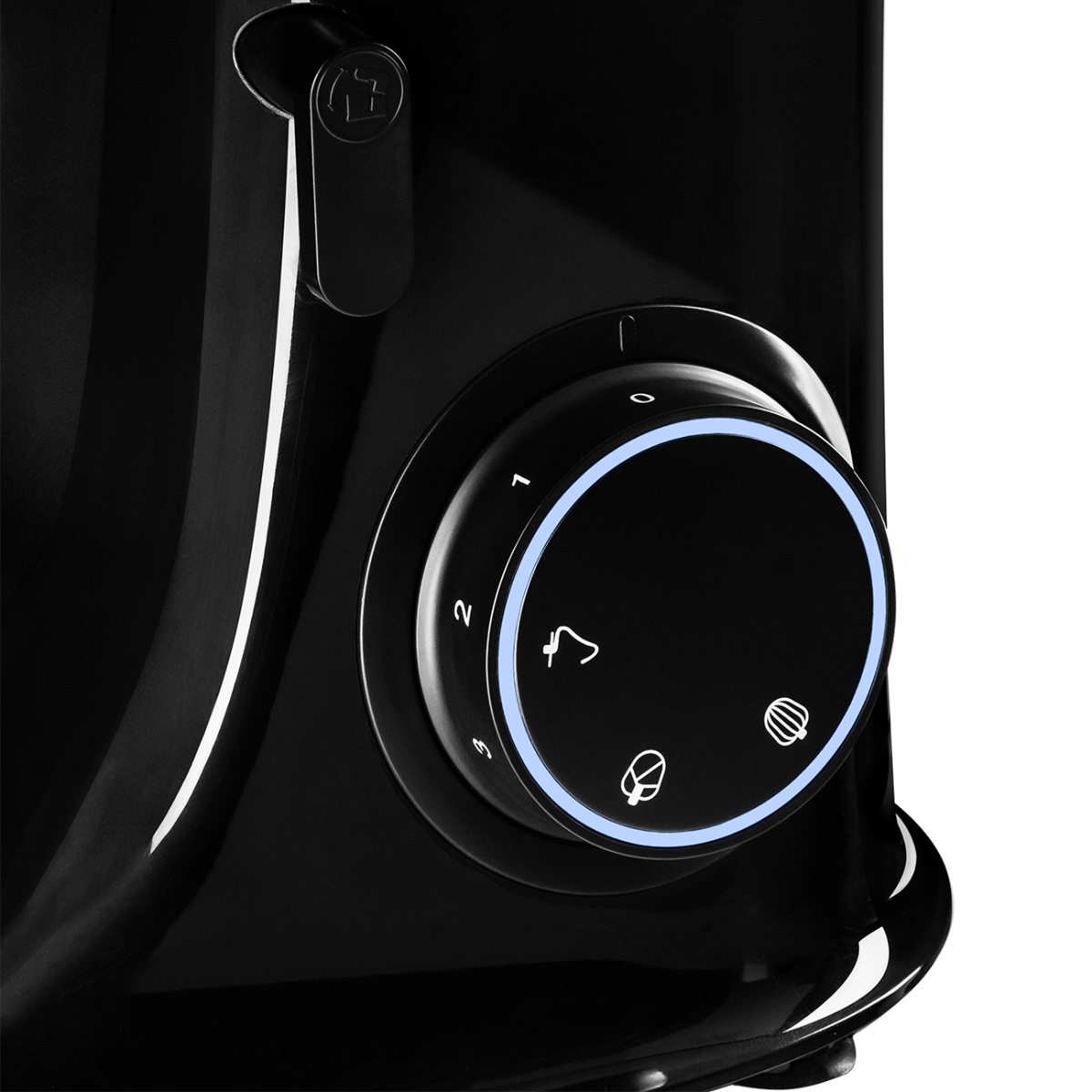 Tym, co wyróżnia Planeet Chef jest duża misa o pojemności 6,5 litra z wygodnym uchwytem, który ułatwia przekładanie ciasta na blachę. Rewelacyjna pokrywa przeciwbryzgowa stoi na straży porządku, a jednocześnie pozwala swobodne dodawać kolejne składniki. Łatwy montaż ułatwia obsługę - charakterystyczny “klik” sygnalizuje poprawność i gotowość do pracy. O bezpieczeństwo dba technologia ThermoFuse, czyli blokada przed przegrzaniem i pracą, gdy głowica jest uniesiona. Antypoślizgowe nóżki zapobiegają przesuwaniu się po kuchennym blacie.