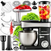 ✅ Załączone wyposażenie: Blender szklany 1,5L, hak do ciasta, Instrukcja obsługi, Maszynka do mięsa, mieszadło płaskie, Miska 6L ze stali nierdzewnej z pokrywą antyrozpryskową, Robot kuchenny 3w1, Szpachelka, trzepaczka
