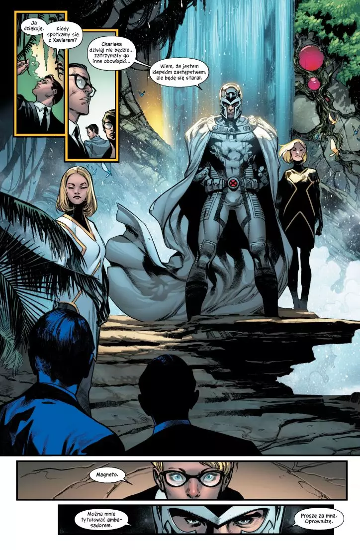 Nowy rozdział w historii X-Men! „Gdy spaliście, świat się zmienił”. Wypowiadając te słowa, Profesor X obwieścił mieszkańcom Ziemi narodziny nowego kraju na wyspie Krakoa. To coś więcej niż azyl – to potężne państwo z własnym prawem i językiem oraz niebywale zaawansowaną biotechnologią, dzięki której mutanci zamierzają wywalczyć uznanie w świecie ludzi. Konsekwencje ich działań będą odczuwalne za sto, a nawet za tysiąc lat! Oto opowieść o tym, jak umarło dawne marzenie o harmonijnym współistnieniu ludzi i mutantów – i jak narodziło się nowe. Scenariusz tego tomu, otwierającego zupełnie nowy rozdział w historii X-Men, napisał Jonathan Hickman, znany z „Fantastycznej Czwórki” oraz pełnej rozmachu sagi o Avengers zakończonej crossoverem „Tajne wojny”. Rysunki stworzyli Pepe Larraz („Avengers: Nie poddamy się”) i R.B. Silva („Amazing Spider-Man”, „Uncanny X-Men”). Album zawiera materiały opublikowane pierwotnie w zeszytach „House of X” #1–6 i „Powers of X” #1–6.