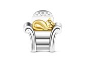 Odkryj elegancję i wyjątkowość biżuterii dzięki naszemu rodowanemu srebrnemu charmsowi, który zachwyca nie tylko estetyką, ale i wyjątkowym designem. Kształt fotela z leżącym pozłacanym kotem sprawia, że ten charms wyróżnia się na tle innych dodatków, dodając Twojej bransoletce niepowtarzalnego uroku.