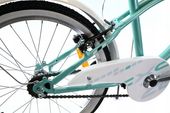 Ten wysokiej jakości rower dziecięcy 20 cali charakteryzuje się nie tylko atrakcyjnym, miętowym kolorem, ale także wyjątkowymi funkcjami bezpieczeństwa. Posiada hamulce V-brake zapewniające skuteczne hamowanie, a łańcuch jest zabezpieczony osłoną, chroniącą przed przypadkowym zahaczeniem.