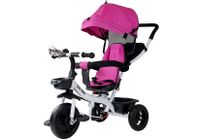 Twoje dziecko jest tak aktywne, że nie może spokojnie usiedzieć w wózku podczas wspólnych spacerów? Mamy na to rozwiązanie! Zdecyduj się na dziecięcy rower trójkołowy, który w przyszłości z pewnością rozwinie w Twoim dziecku zwyczaj aktywnego spędzania wolnego czasu. Baldachim z filtrem UV, chroniący dziecko przed promieniami słońca, a także prowadnik, za pomocą którego to rodzic może kierować pojazdem, czynią rower wózkiem spacerowym. Różowy rowerek będzie rósł z Twoim dzieckiem. Wraz z biegiem czasu i umiejętnościami, jakie nabierze Twoja pociecha, możesz go modyfikować - zdemontować obręcz, rączkę, czy złożyć podnóżki na rzecz pedałów. Dziecko może rozpocząć naukę na rowerku z pedałami. Spędzając wesoło czas na świeżym powietrzu.