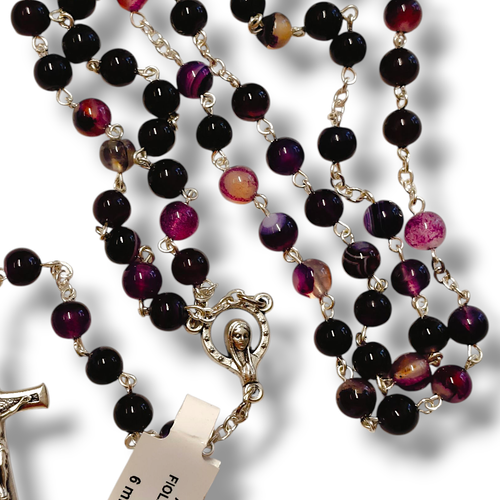 Z racji że różaniec wykonany jest z kamienia szlachetnego, poszczególne paciorki mogą się od siebie różnić odcieniem, przebarwieniem.