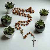 Drewniany różaniec na drucie metolowym. Bardzo mocy, poręczny oraz elegancki.