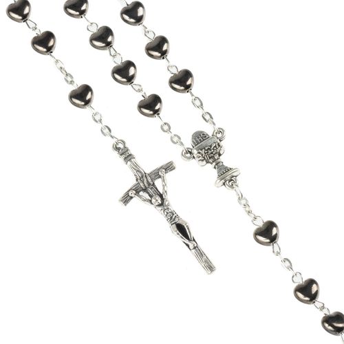 Różaniec, o długości 48 cm, jest wyjątkowo funkcjonalny i poręczny, co czyni go idealnym towarzyszem w codziennych modlitwach. Koraliki w kształcie serduszek, o średnicy 0,7 mm, zostały starannie wykonane, zapewniając nie tylko estetykę, ale i przyjemność z modlitwy. Krzyżyk, o wymiarach 2 cm x 4 cm, dodaje elegancji oraz podkreśla głęboką symbolikę tej religijnej biżuterii. Kolor grafitowy nadaje mu unikalności i stylu, sprawiając, że staje się on również pięknym dodatkiem do codziennych strojów.
