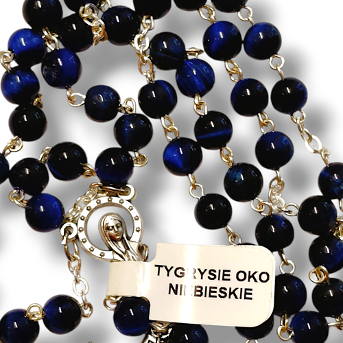 Różaniec wykonany z kamieni szlachetnych. Pięknie mieni się w świetle zarówno dziennym jak i sztucznym.