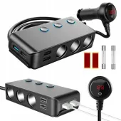 ! Nasz unikalny Rozdzielacz gniazda zapalniczki z woltomierzem i ładowarką USB to prawdziwe rozwiązanie dla osób ceniących sobie wygodę i funkcjonalność. Posiada 3 niezależne gniazda zapalniczki i 4 porty USB QC3.0, umożliwiając jednoczesne ładowanie i korzystanie z wielu urządzeń.