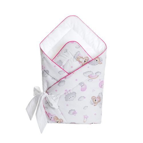 Rożek jest dwustronny i jest niezwykle praktyczny i wszechstronny. Może być używany jako becik niemowlęcy, śpiworek, kocyk, kołderka lub mata do przewijania , dostosowując się do różnych potrzeb Twojego dziecka. Jest idealny zarówno do łóżeczka, jak i do wózka, zapewniając ciepło podczas spacerów oraz wygodę w domu.