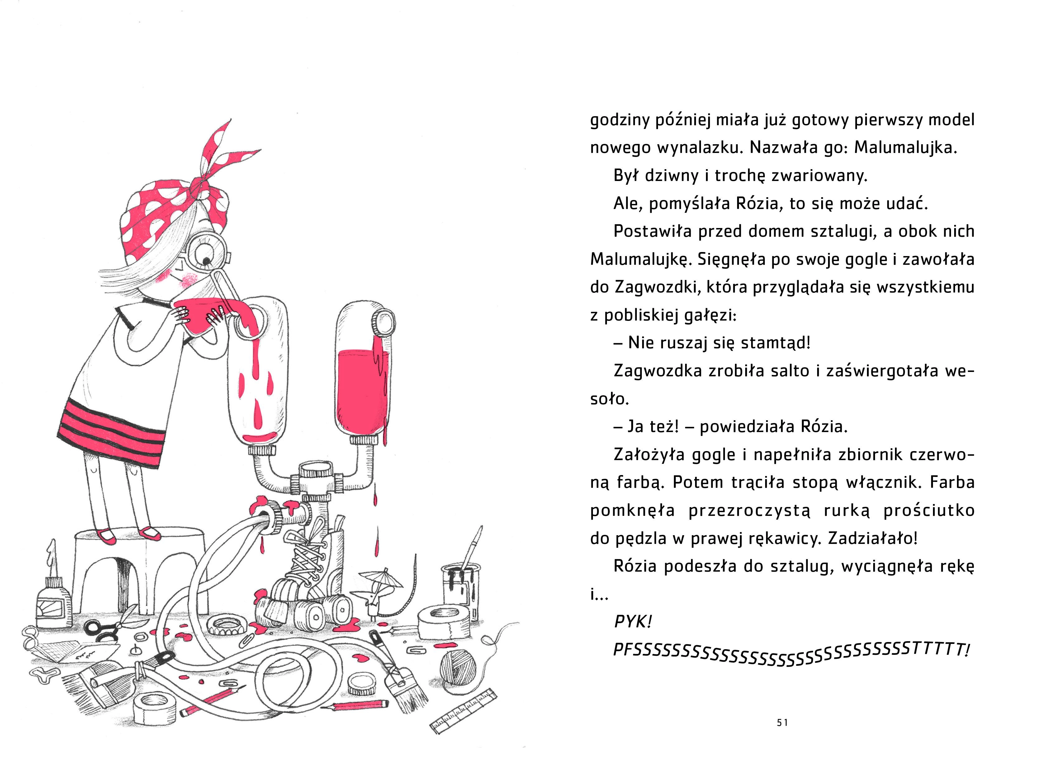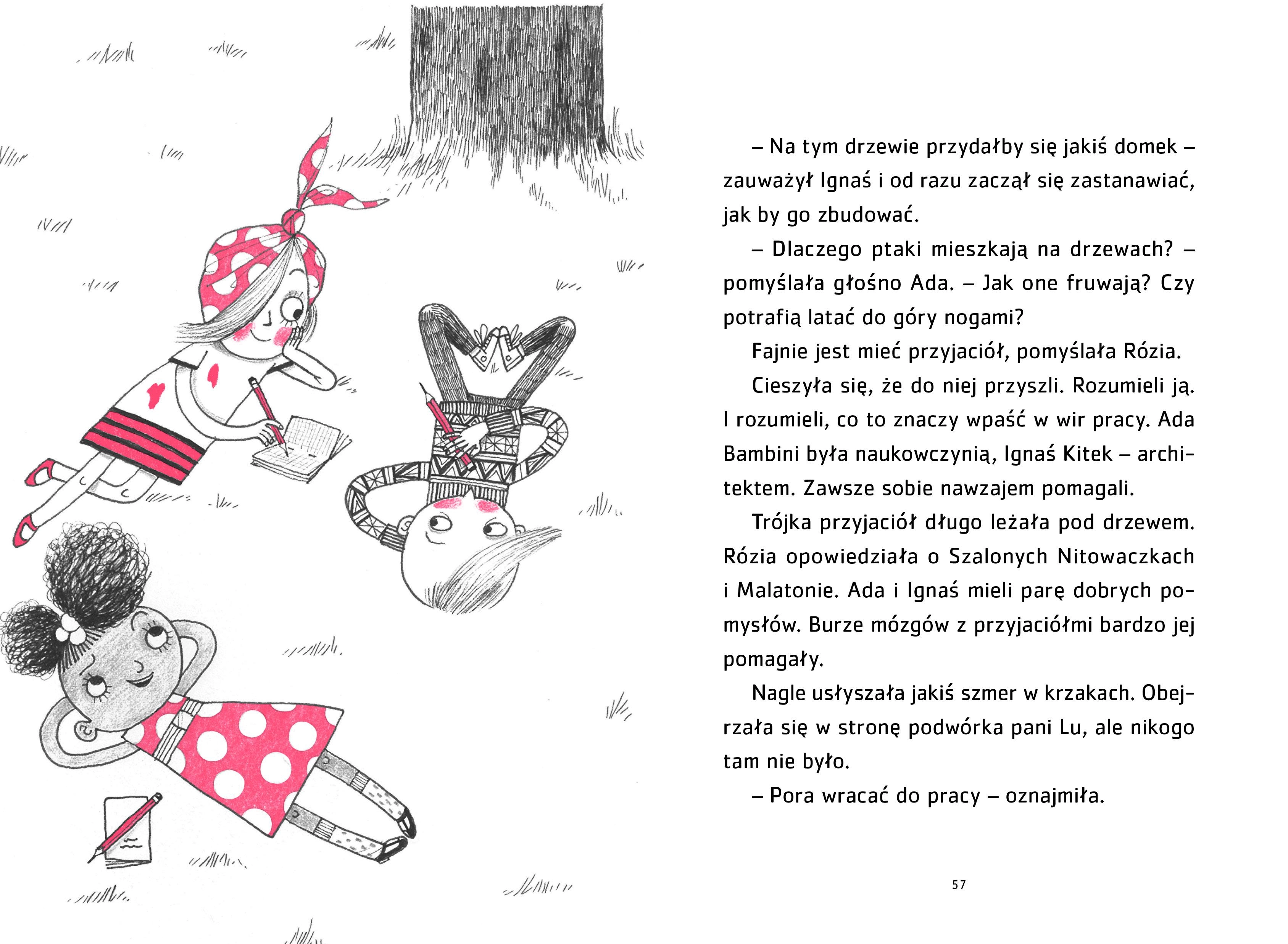 Rózia Rewelka wie, jak smakują fiaska, klopsy, klapy i katastrofy. W pracy inżynierki liczy się przecież wytrwałość! Tym razem jednak Rózia staje przed wyjątkowym zadaniem – i boi się, że może ją ono przerosnąć. Ukochana ciotka Rózi wraz z paczką przyjaciółek — Szalonych Nitowaczek, które w latach drugiej wojny światowej budowały samoloty — pilnie potrzebuje pomocy w stworzeniu nowego wynalazku. Rózia uwielbia takie wyzwania! Po kilku nieudanych próbach dziewczynka zaczyna tracić nadzieję. W końcu jednak z pomocą swoich dociekliwych przyjaciół, Ignasia Kitka i Ady Bambini, osiąga upragniony cel. I razem z Nitowaczkami odkrywa, czym naprawdę jest dom. Inspiracją dla postaci praciotki Róży była Róża Nitowaczka. Podczas drugiej wojny światowej miliony kobiet w Stanach Zjednoczonych, Wielkiej Brytanii, Australii, Kanadzie, Nowej Zelandii, Związku Radzieckim i innych sprzymierzonych krajach pracowały na rzecz wysiłku wojennego. Jedne wytwarzały żywność w gospodarstwach rolnych, inne budowały okręty, samoloty, czołgi i jeepy. Z pomocą wielu kobiet amerykańskie fabryki wyprodukowały ponad trzysta tysięcy samolotów, osiemdziesiąt sześć tysięcy czołgów i dwa miliony ciężarówek. W Stanach Zjednoczonych wysiłek tych kobiet uosabiała Rózia Nitowaczka, fikcyjna postać z chustą na głowie, której motto brzmiało: “Damy radę!”.