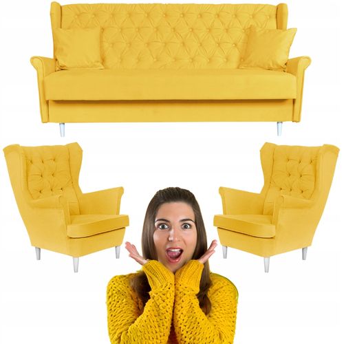 ✅ Kompleksowy zestaw wypoczynkowy zawierający 2 fotele i wersalkę uszak tworzy harmonijną całość, zapewniając wystarczająco miejsca do siedzenia dla rodziny lub gości;
