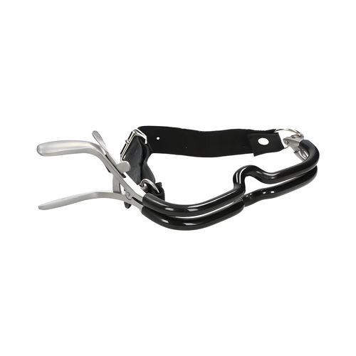 Ten typ Jennings Mouth Gag został przekształcony z klasycznego narzędzia medycznego w fetyszową machinę oralnej dyscypliny. Stalowe klamry rozciągają szczękę, a regulowana skórzana uprząż oplata głowę, unieruchamiając narzędzie tam, gdzie ma pozostać – bez prawa do zamknięcia ust, bez szansy na odmowę.