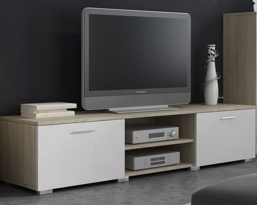 Przedmiotem aukcji jest szafka RTV 140 z płyty laminowanej w kolorze Dąb Sonoma biały