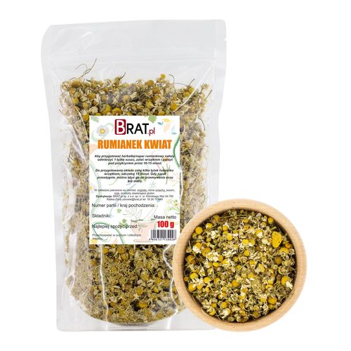 Wybierz Rumianek Kwiat 100g od marki BRAT i doświadcz zdrowotnych korzyści, jakie oferuje to niezwykłe zioło!