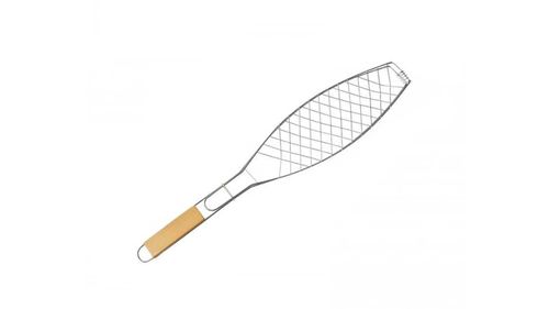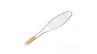 Charakterystyki techniczne: Materiał: stal, drewno Wymiary: 56x12 cm Krótka charakterystyka (w opisie): Kolor: srebrny Materiał: stal chromowana, drewno Wymiary: 56x12 cm Kraj produkcji: Chiny Marka: Grilli OPIS Ruszt do grillowania ryb Grilli 9631 to wygodne i praktyczne narzędzie, które znacznie ułatwia przyrządzanie ryb. Za pomocą takiego rusztu łatwo przygotujesz rybę zarówno w całości, jak i w postaci steków lub plastrów. Często podczas smażenia ryba przykleja się do rusztu grilla, w wyniku czego jej obrócenie bez uszkodzenia jest prawie niemożliwe. Problem udało się rozwiązać właśnie dzięki temu akcesorium: ryba znajdując się wewnątrz siatki nie styka się bezpośrednio z rusztem grilla, przez co nie przywiera i wszelkie działania stają się dużo łatwiejsze. Ruszt nadaje się do używania nie tylko na grillach, ale także w otwartych piecach. Wykonany z wytrzymałej chromowanej stali, posiada blokadę połówki siatki oraz wygodną drewnianą rączkę. Rozmiar powierzchni roboczej: 33x12 cm.