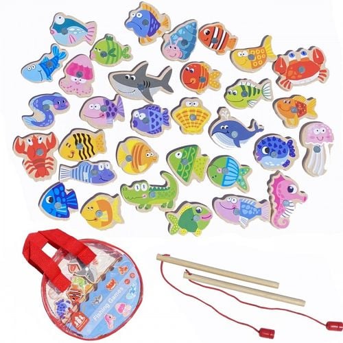 Drewniane rybki, kształty do łowienia to wspaniała zabawka edukacyjno-zręcznościowa.
